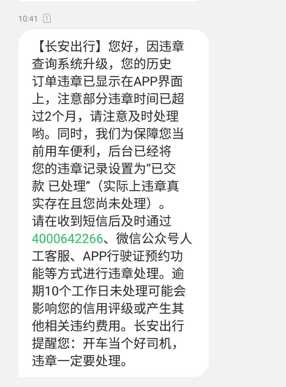 我根本就没处理这个违章,但是怎么突然就处理结束了呢?然后长安出行发短信解释了一下